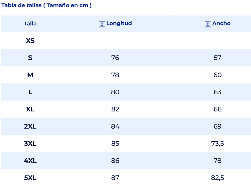 XS, S, M, L, XL, XXL
